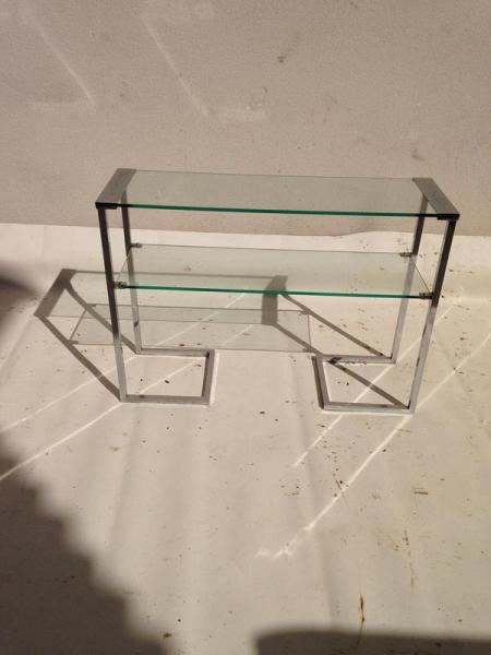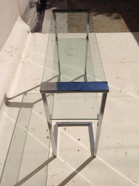 CONSOLE DESIGN ANNEES 70 EN CHROME ET VERRE DOUBLE PLATEAUX
