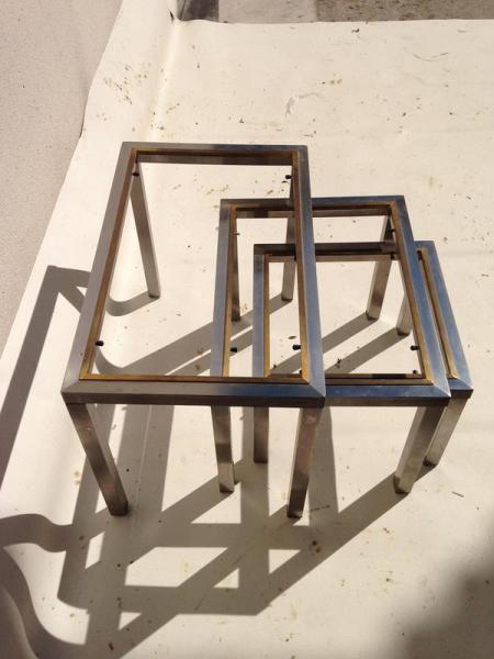 9 TABLES GIGOGNE DESIGN EN ACIER ESPRIT LED MAISON JANSEN / WILLY RIZZO (fourni avec ses plateau en verre)