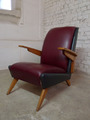 Fauteuil en simili, 1950 simili gris foncé & bordeaux garniture encore bien ferme un fauteuil confortable L 66cm / H 82 cm / P 80 cm