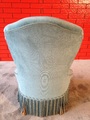 MEDAILLONS TISSES EN VELOURS BLEU ET FOND BLANC